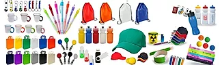 Plumas, tasas, memorias usb, gorras, playeras, batas, bolsas, etcétera.